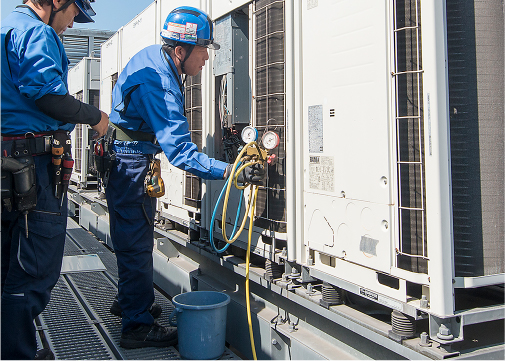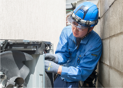 家庭用のエアコンや空気清浄機、給湯器。 さらには、オフィスビルや病院、ショッピングモールといった商業施設の空調設備まで、私たちの仕事は多岐にわたります。 機器の不具合を見つけ、直し、快適な空間を取り戻す私たちは、まさに「空調機器のお医者さん」。 地域の暮らしと安心を、確かな技術で支えています。